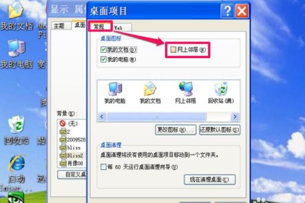 3、在桌面项目的“常规”选项卡下,找到“网络邻居”这一项,如果桌面没网上邻居这个图标,这一项则肯定没勾选,Win7则在桌面图标下找到“网络”这一项。