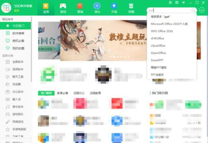 1、首先我们需让电脑连接好网络,然后在桌面的应用商店或网页上搜索PPT等办公软件。