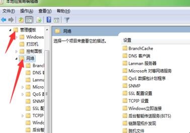 3、在弹出的内容当中,左侧的菜单当中找到管理模板,然后进入到网络选项,然后在右侧找到这个QoS数据包计划程序。