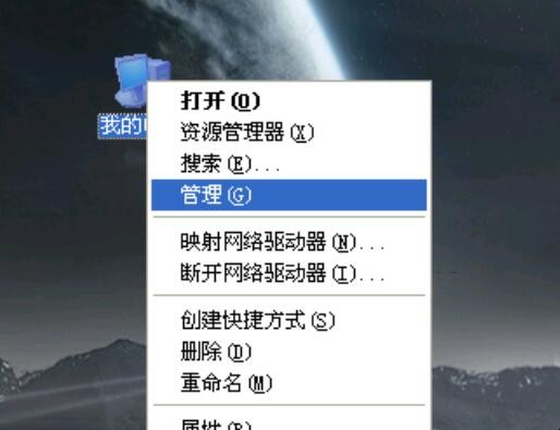 1、右击“我的电脑”,从弹出的右键菜单中选择“管理”项。