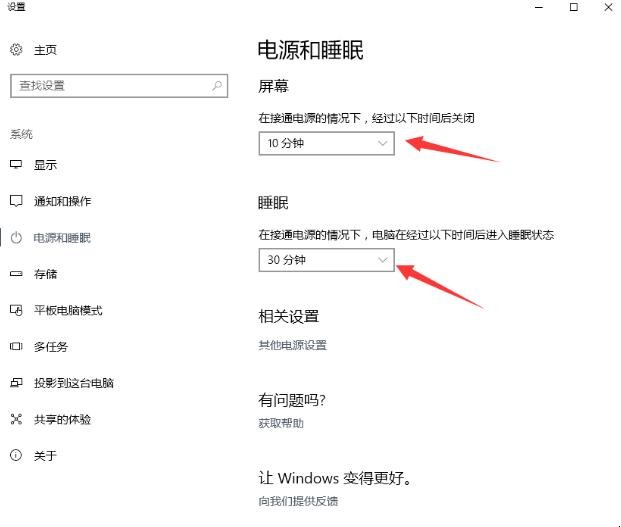 3、界面可以看到屏幕和睡眠两项设置,根据自己喜爱设置时间就可以自动锁屏了。