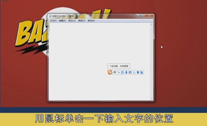 1、找到输入框,新建一个文本文档,双击打开文本文档,鼠标单击输入文字的位置。