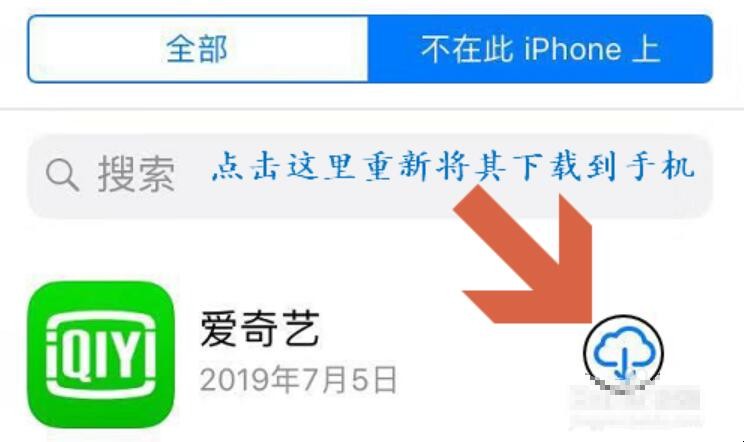 5、很简单,全部就是之前通过此苹果账号在AppStore下载过的所有应用,这里都会有显示,而不在此iPhone则代表曾经下载过但是目前已经删掉的应用,点击右侧的云端图标即可重新进行下载了,见图。