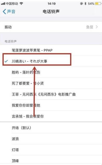 4、最后选择你要的歌曲铃声名称并点击它就可以了。