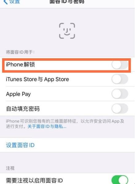 3、将【iPhone解锁】后面的开关开启即可。