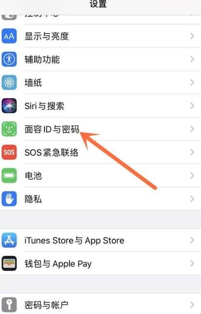 1、在手机设置菜单中点击【面容ID及密码】。