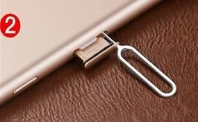 2、然后使用随机附赠的顶针对准卡槽上的小孔,稍稍用力插入进去,此时手机的卡槽就会自动弹出。