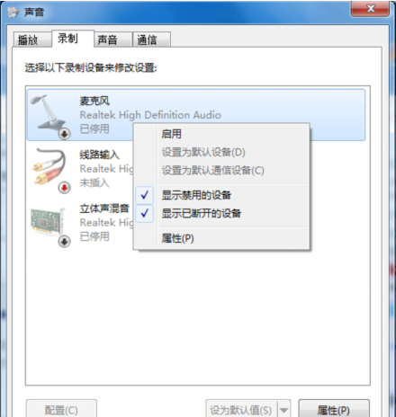 3、这里看到麦克风被停用了,右键点击启用即可。
