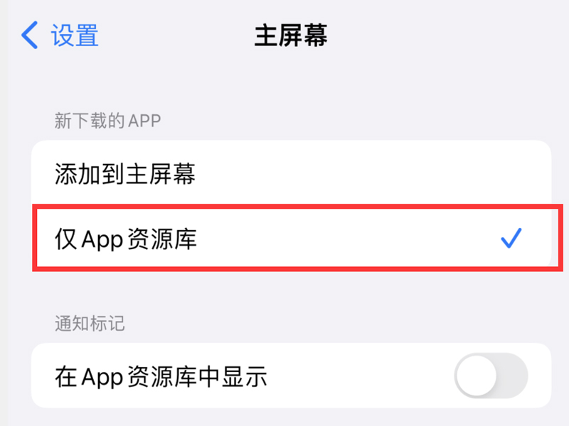 2、把新下载的app勾选为“仅app资源库”即可。