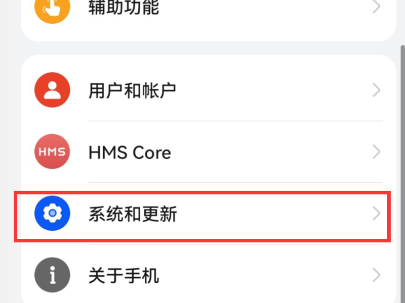 1、打开手机的设置,点击“系统和更新”按钮,进入系统设置中。