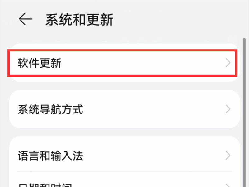 2、点击“软件更新”按钮,进入软件更新的设置页面。