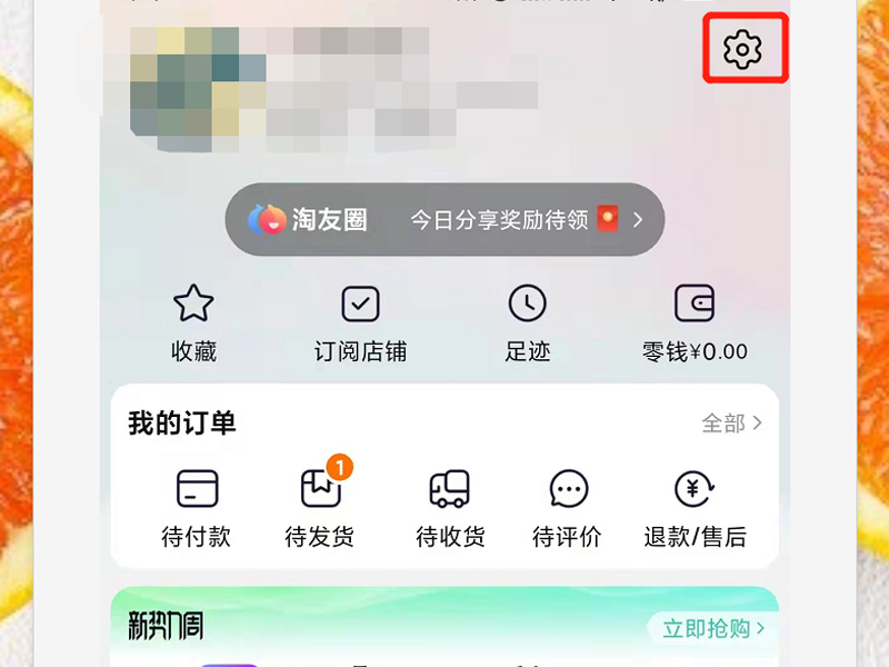 1、打开淘宝app,点击我的淘宝,再点击右上角的齿轮进入设置界面。