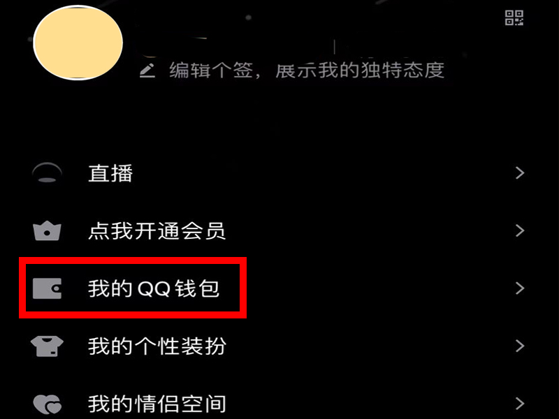 1、打开qq,进入“个人中心”界面后,点击“我的QQ钱包”,进入“钱包”界面。