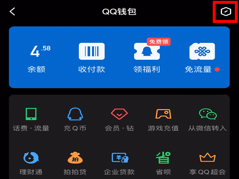 2、进入“钱包”界面后,点击右上角的“设置”符号,进入“设置”界面。