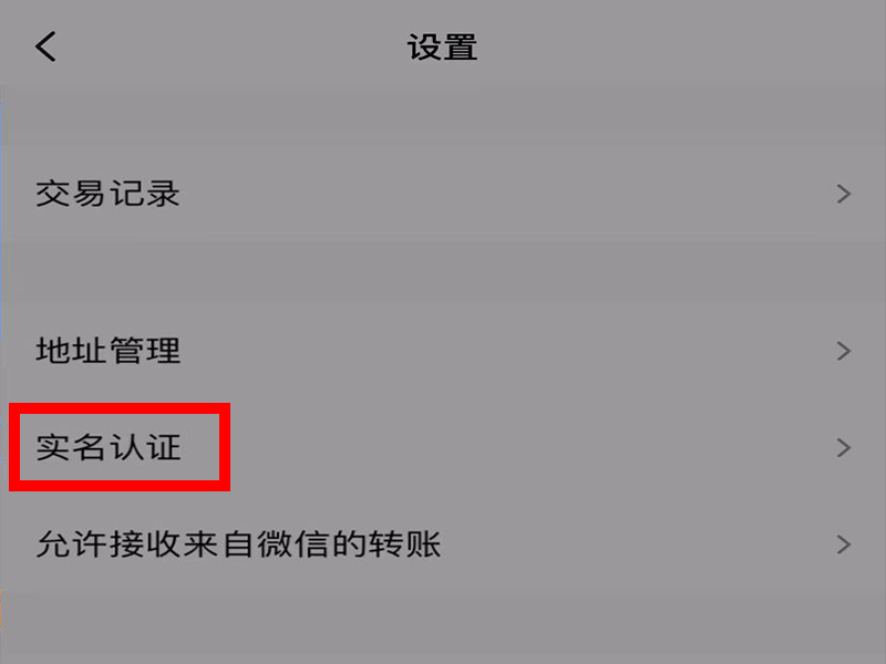 3、进入“设置”界面后,点击“实名认证”,进入“实名认证”界面。