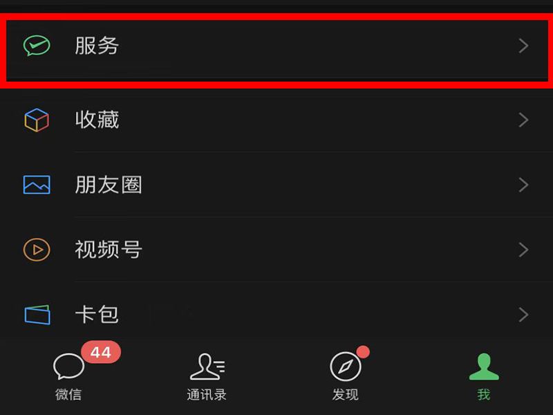 1、打开微信,点击进入“我”的界面,再点击“服务”,进入“服务”界面。