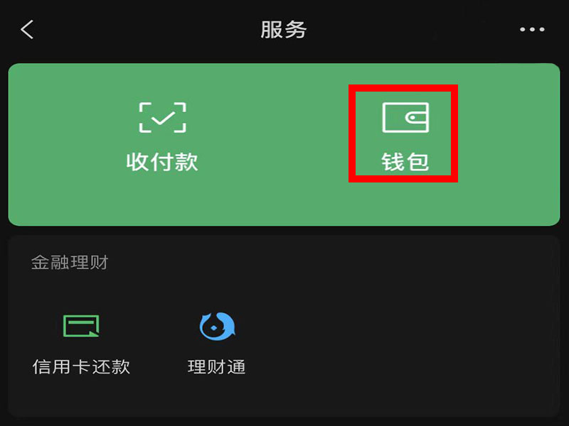 2、进入“服务”界面后,点击“钱包”,进入“钱包”界面。