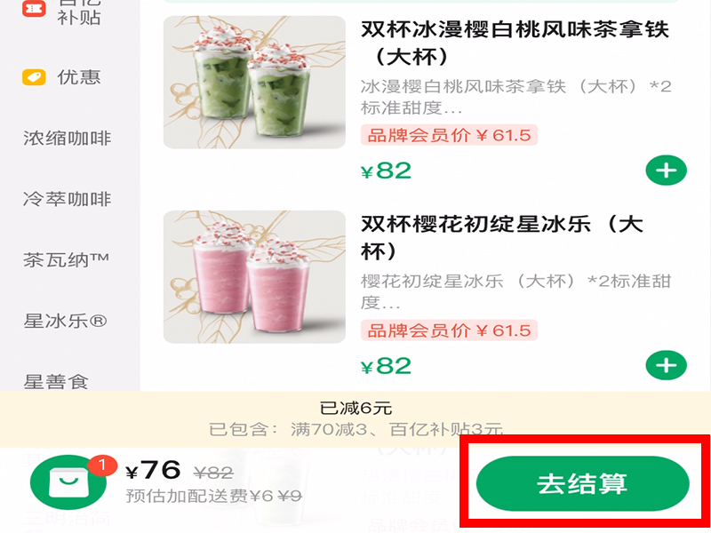 3、进入“店铺详情”界面后,加购商品至满减金额,点击“去结算”,进入“订单详情”界面。