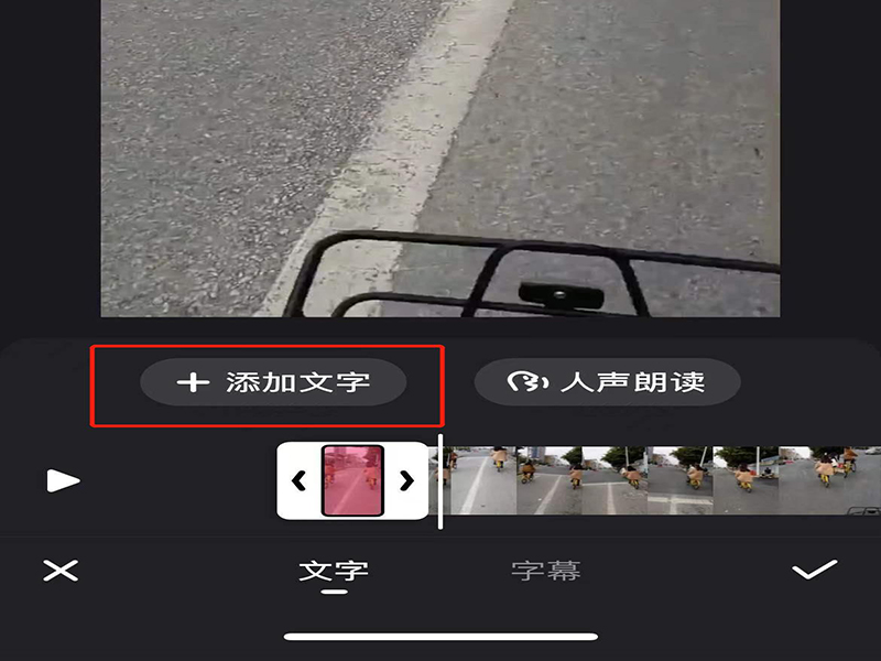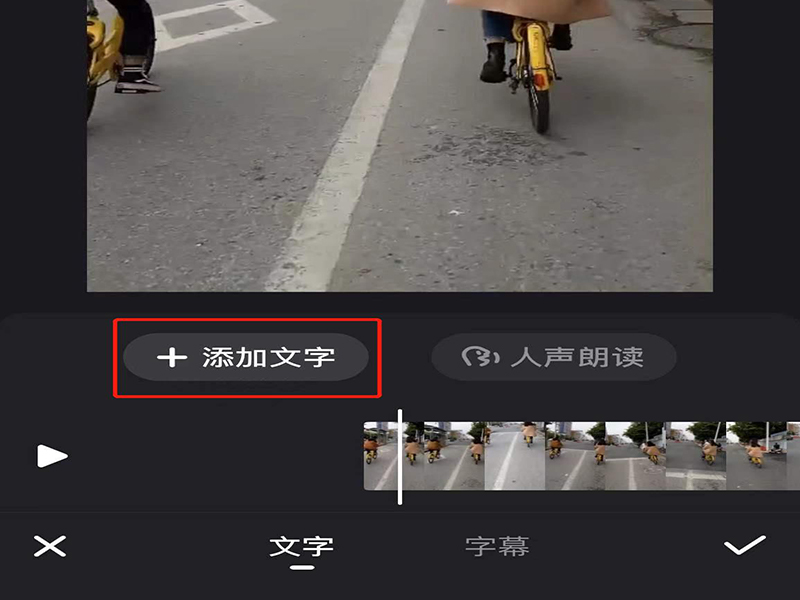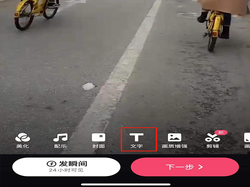1、打开快手app,在视频编辑页面上,点击“文字”,进入添加文字工具栏。