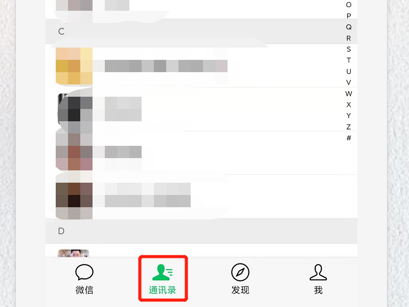 2、选择下方的通讯录后,选择一位需要删除的好友。