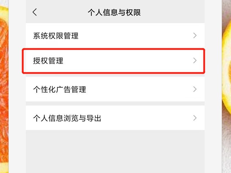 3、进入个人信息与权限界面后,选择授权管理即可查看所绑定的账号。