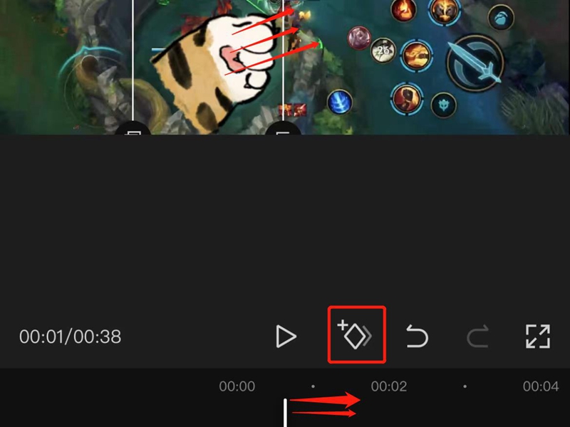 4、向右拖动时间轴,在需要的时间移动视频上的贴纸到遮挡位置,同时添加关键帧。