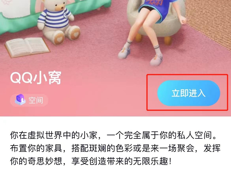 2、点击下方的角色,选择小窝,点击立即进入,完成授权后即可进入qq小窝。