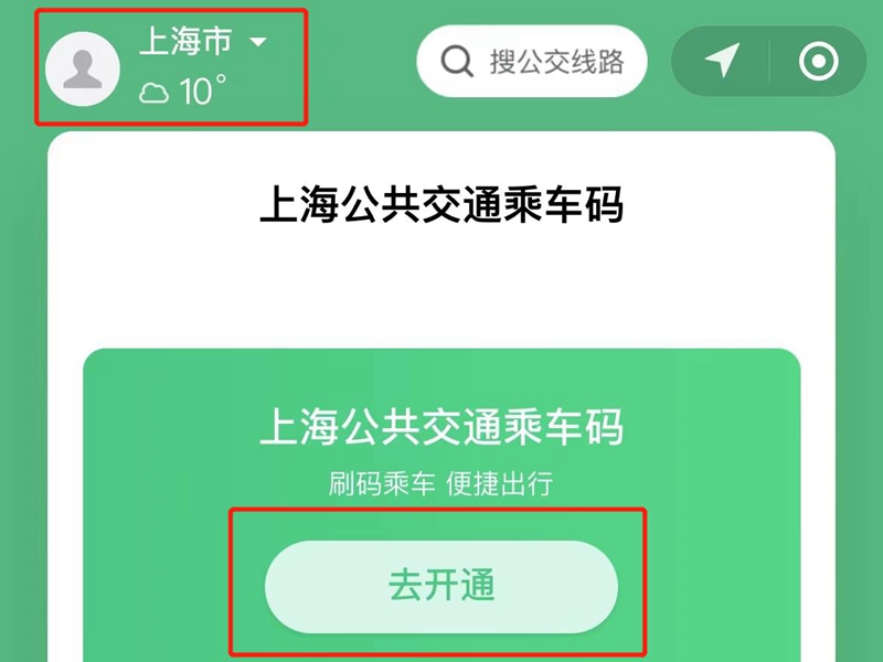 2、点击左上角的地区切换,选择上海市,选择上海公共交通乘车码,授权开通乘车码即可。
