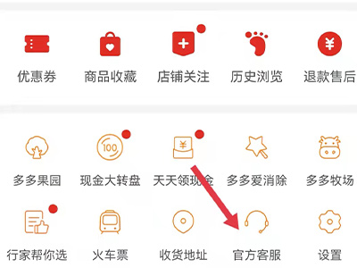 1、打开拼多多app,在个人中心页面中,点击“官方客服”,进入页面。