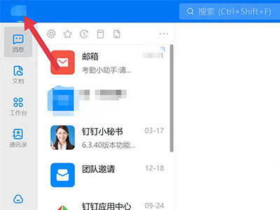 1、打开电脑版钉钉,在主页中点击左上角头像,进入页面。