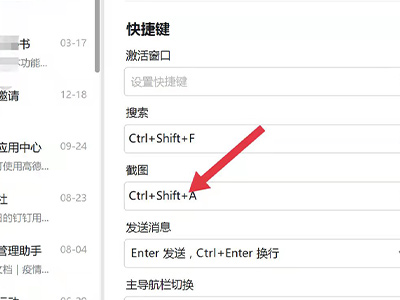手机钉钉截图没有快捷键,是根据手机自带的截图功能截图的,电脑版钉钉的快捷键是ctrl+shift+A,也可以自己设置。具体操作方法如下: