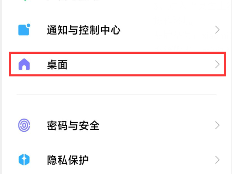 1、打开手机的设置,点击“桌面”按钮,进入桌面的设置页面中。