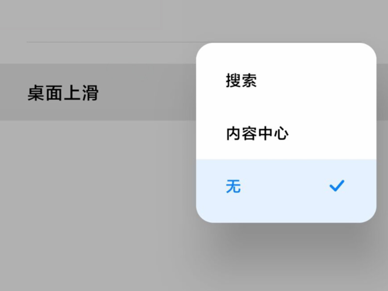 3、进入“桌面上滑”选项,勾选为“无”即可。