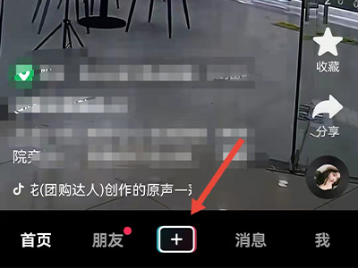 1、打开抖音app,在底部的导航栏中点击“+号”,进入录制页面。