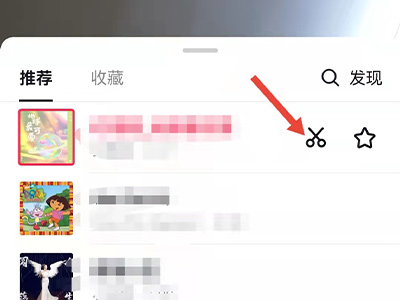 3、在页面中,选择需要添加的音乐,并点击剪刀图标,进入编辑页面。