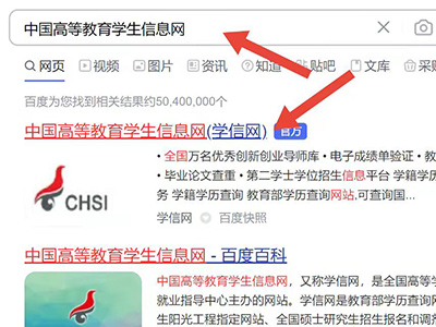 1、打开浏览器,在搜索栏中输入并搜索中国高等教育学生信息网,点击进入。