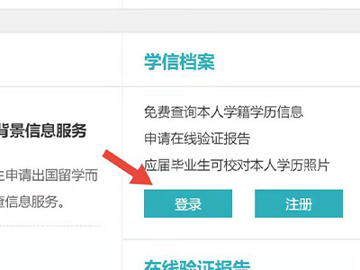 2、在学信档案一栏中点击“登录”,进入登录页面后,填写信息进入页面。