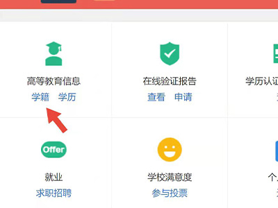 3、进入页面后,在高等教育信息一栏中,点击“学籍”,进入页面。