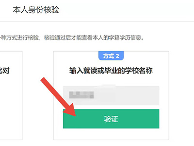 4、在页面中输入毕业的院校进行验证,点击“验证”进入页面后即可完成查看学籍号。