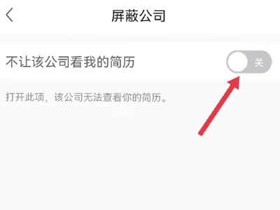5、在页面中,点击“关”,即可开启屏蔽功能,这样便可完成屏蔽以前的公司。