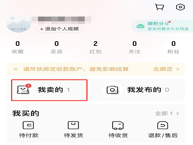 2、在我的个人页面上,点击“我卖的”,进入我卖的个人页面。