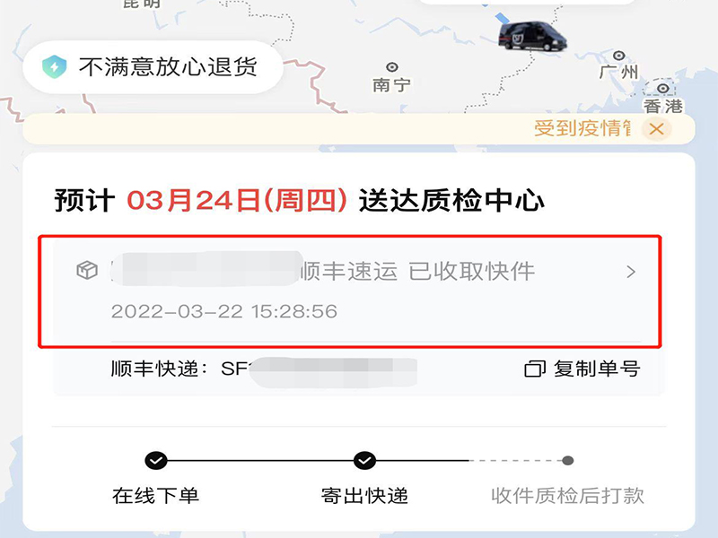 4、在订单详情页面上,即可查看到该商品寄出后的物流进度。
