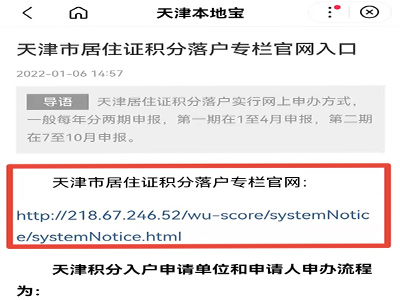 2、选择“天津市居住证积分专栏官网入口”,点击官网链接。