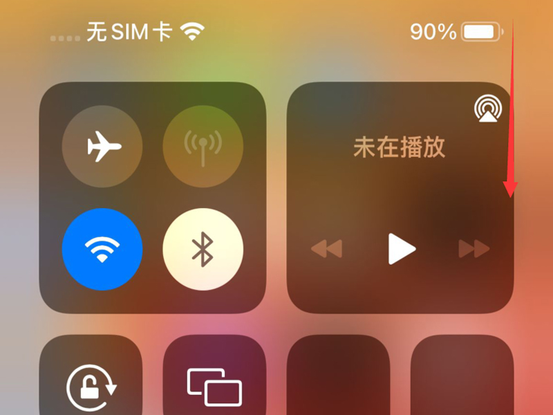 1、进入手机的桌面中,从手机屏幕的右上角往下滑,呼出控制中心的界面。