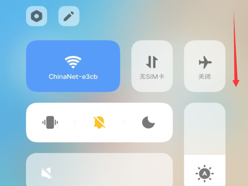 1、进入手机的桌面中,从手机屏幕的右上角往下滑,呼出控制中心的界面。